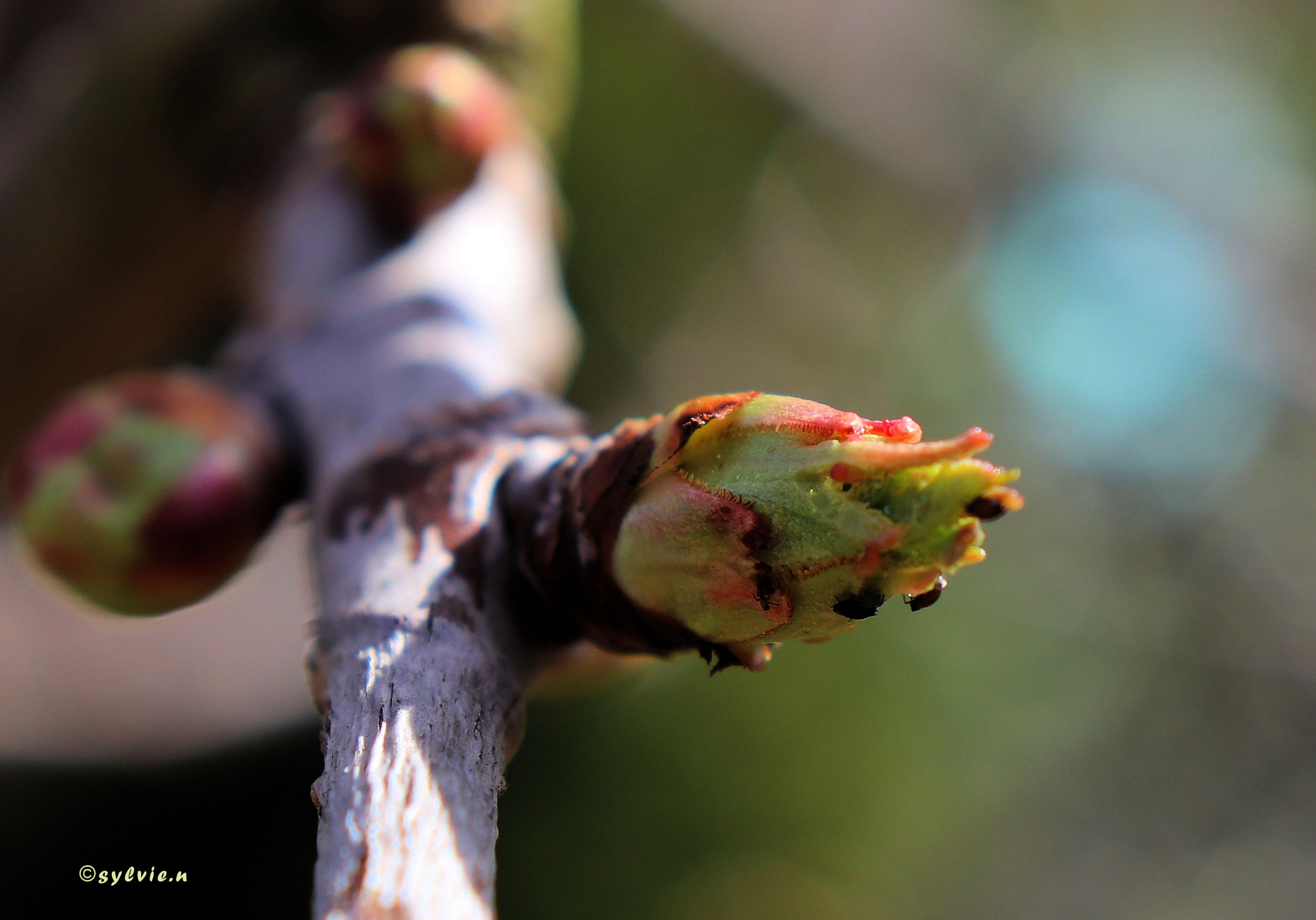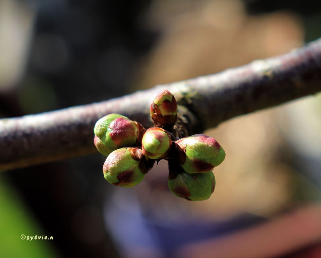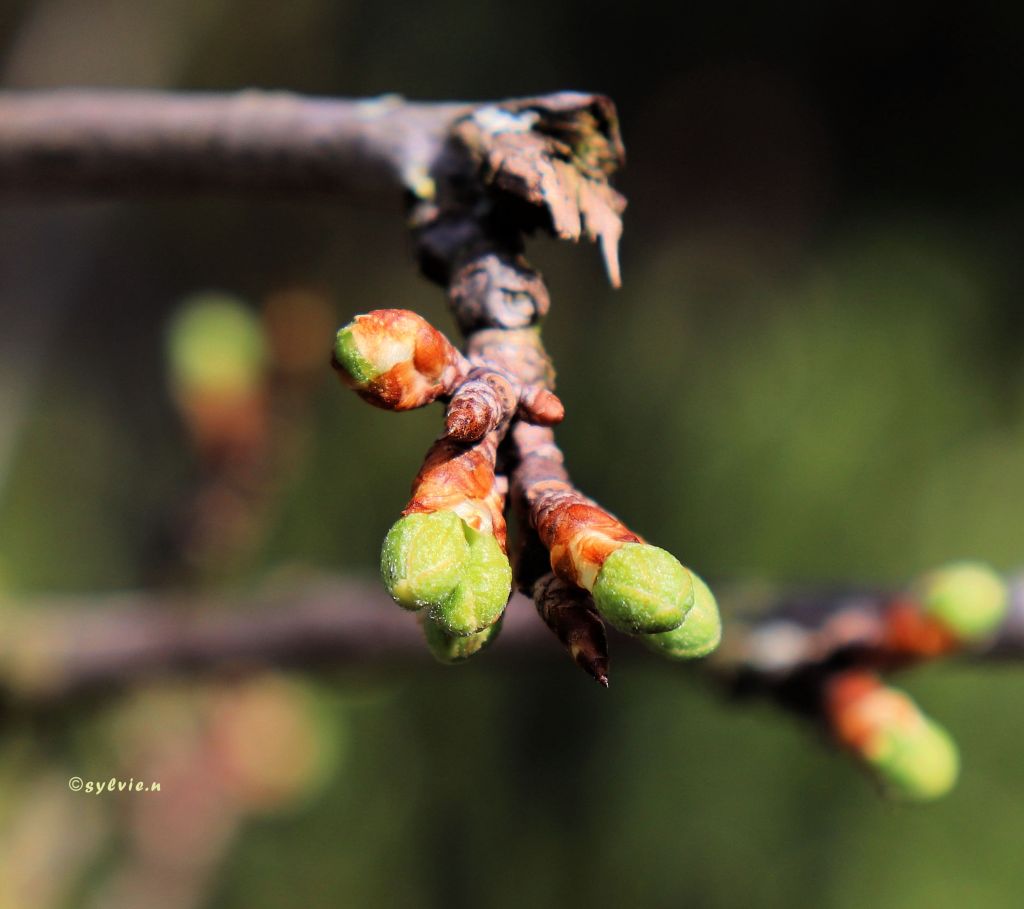 Rechts die Knospe vom Mirabellenbaum