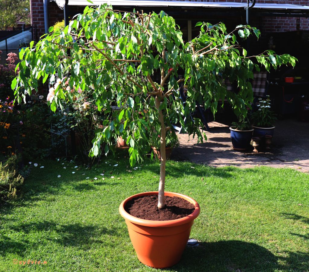 Es sieht so aus, dass diese Woche schon die Obstbäume anfangen zu blühen. Wir haben einen Kirschbaum mit süßen Kirschen, den wir immer vor den Vögel schützen, aber sie sind meistens schneller. Ich hoffe, dass sie dieses Jahr etwas für uns übrig lassen. Einen Mirabellenbaum der Sorte „Mirabelle von Nancy“. Da hat sich letztes Jahr der Pflaumenwickler breit gemacht. Hoffentlich kann ich ihn mit natürlichen Mitteln weglocken kann.