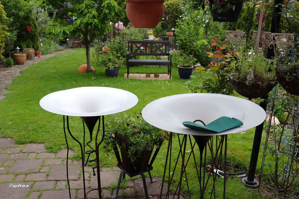 Vor zwei Jahren dann, der Keller wurde mal wieder aufgeräumt, waren die Lampen immer noch da. Nur hat das lange Liegen im Keller seine Spuren hinterlassen. Was machen wir mit den Lampen? Auf den Müll? Irgendwie konnte ich sie nicht wegwerfen. Dann hatte ich eine Idee. Sie kommen in den Garten. Irgendetwas wird mir schon einfallen.