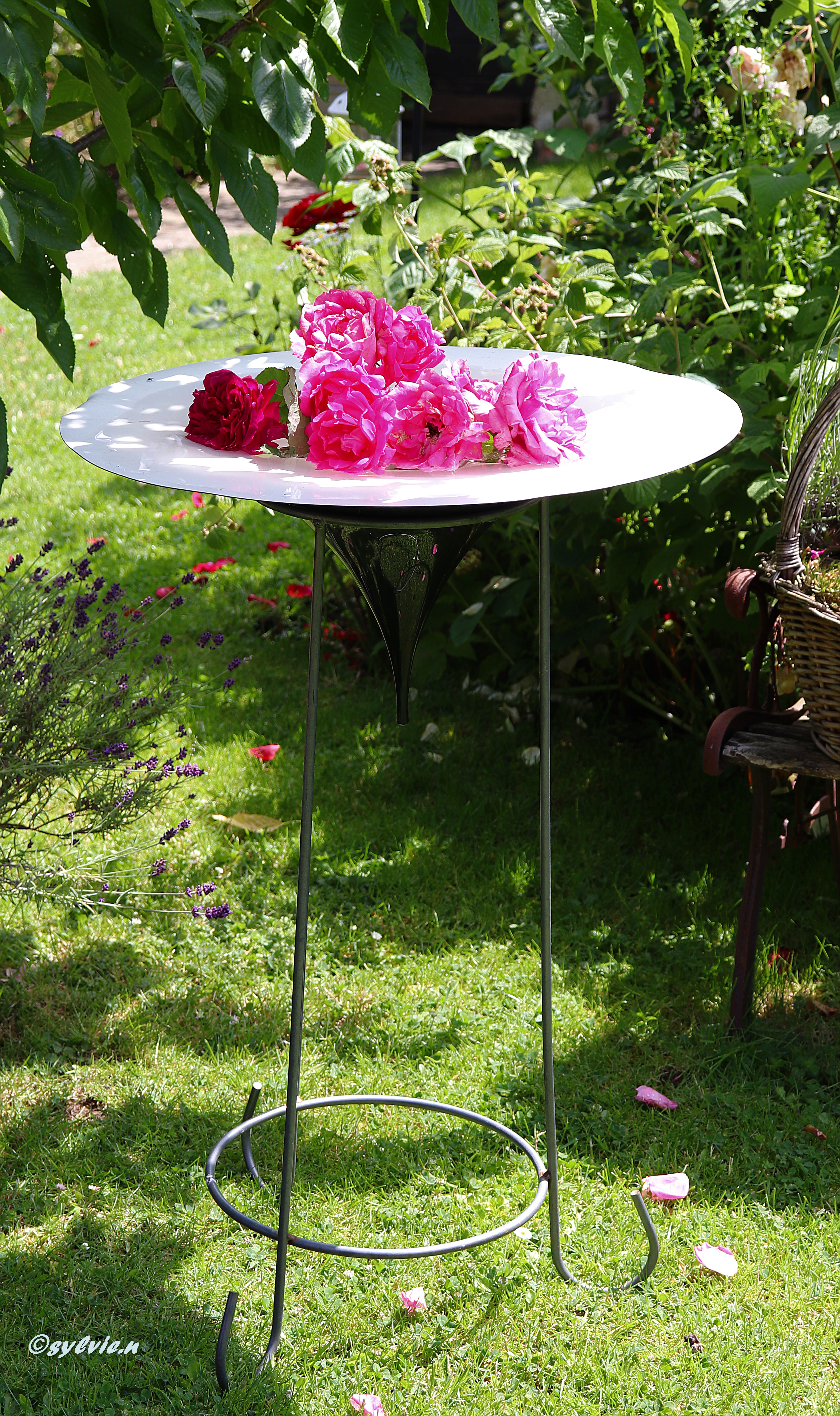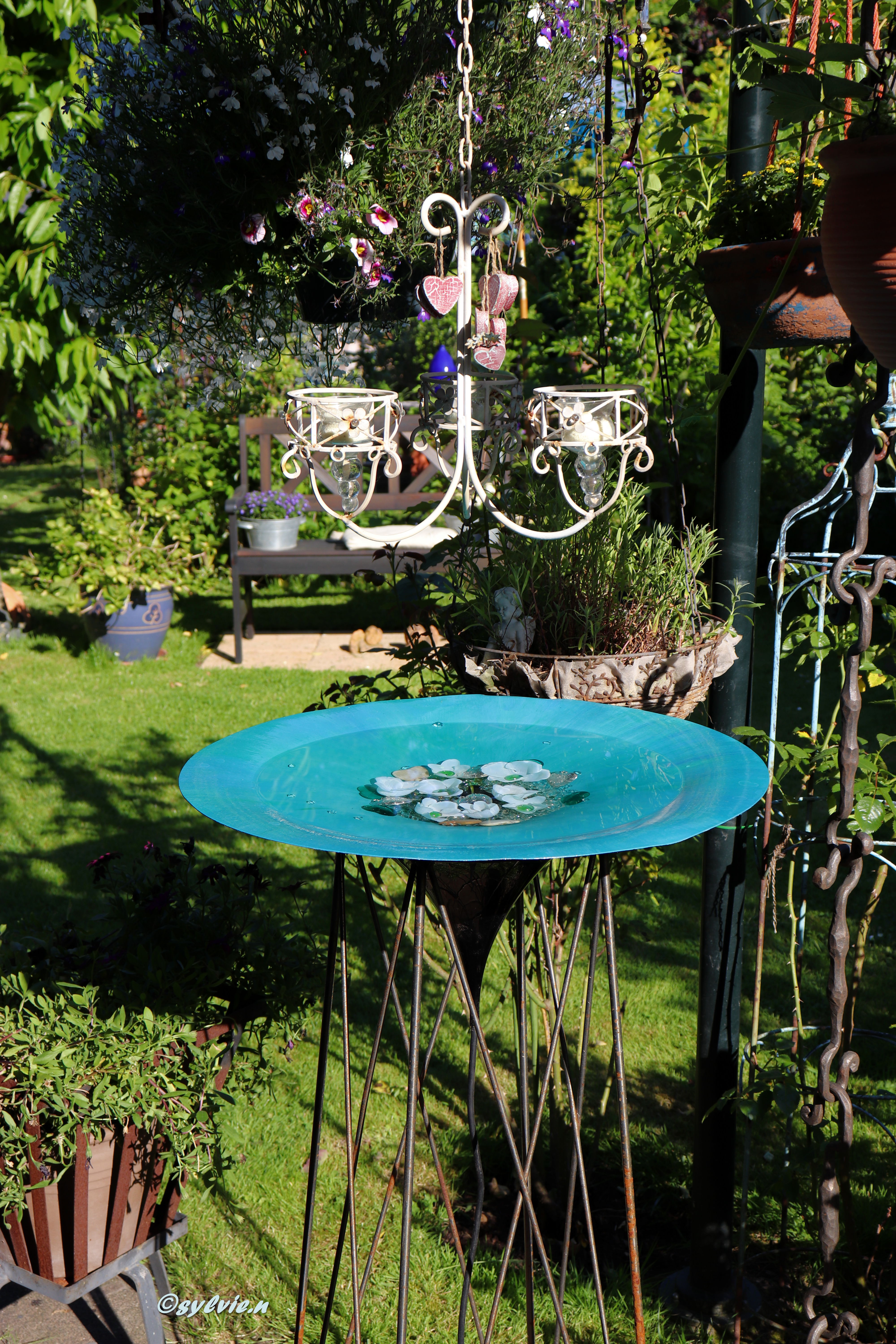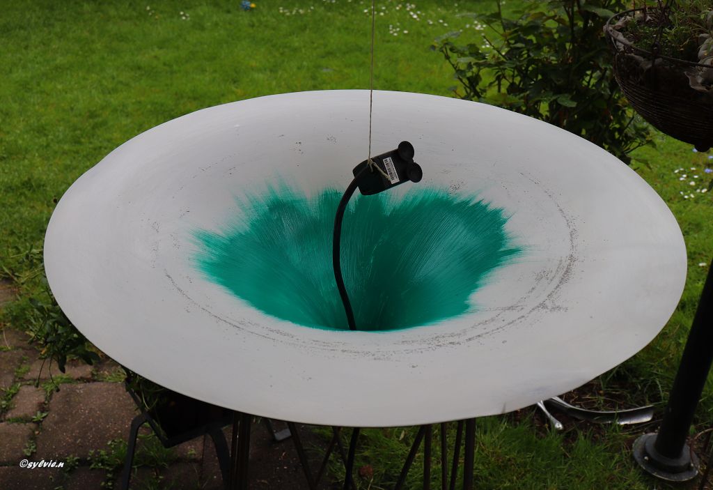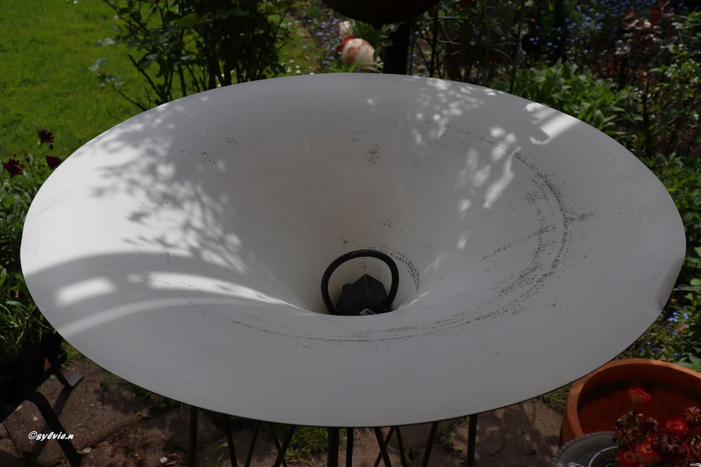 Dann habe ich versucht das Loch zu schließen um Wasser hinein zu tun. Als Vogeltränke, oder einfach nur mit Schwimmkerzen schmücken. Einen Abend schaute ich so auf meine Hängelampen und da kam mir die Idee.