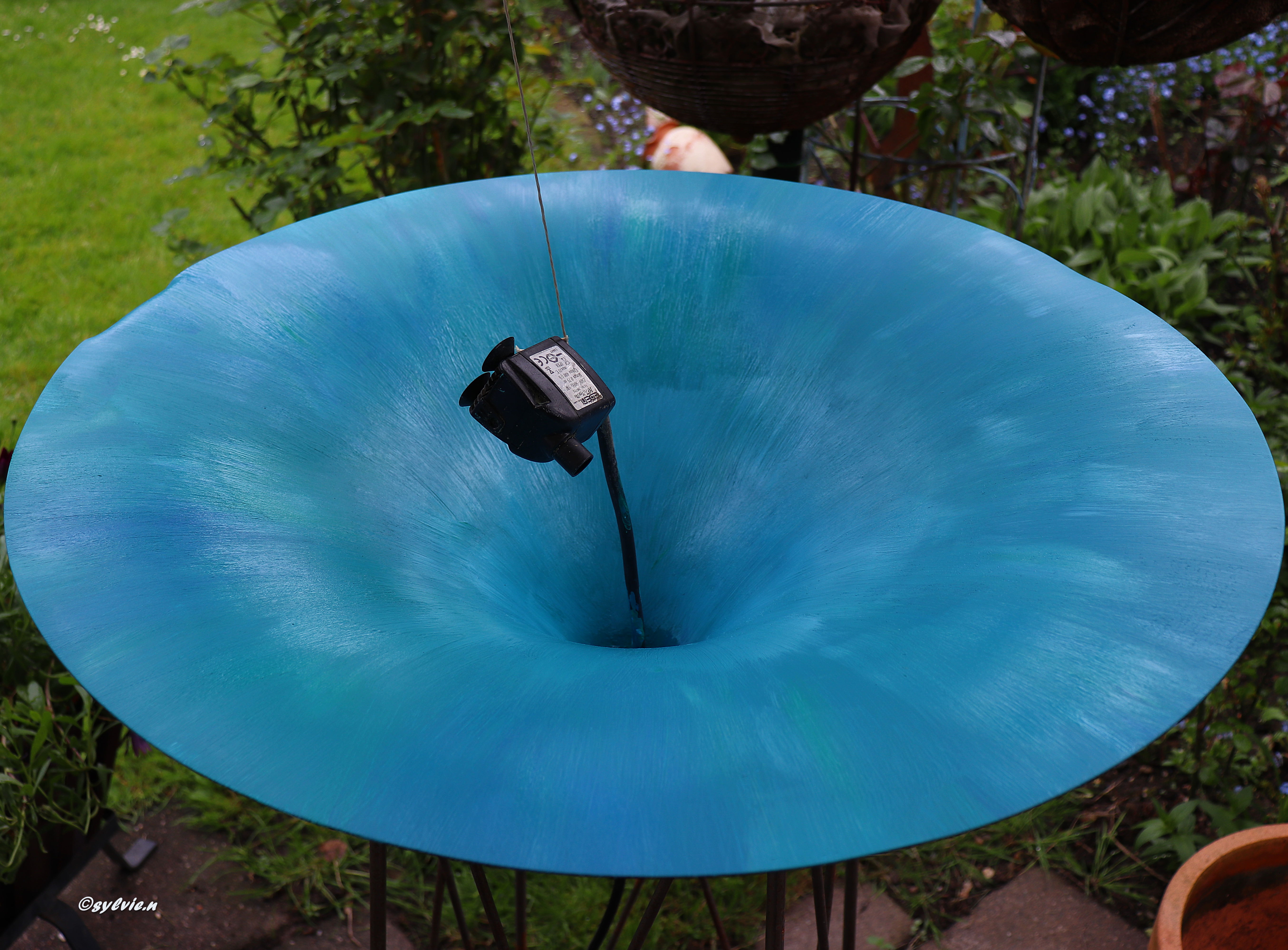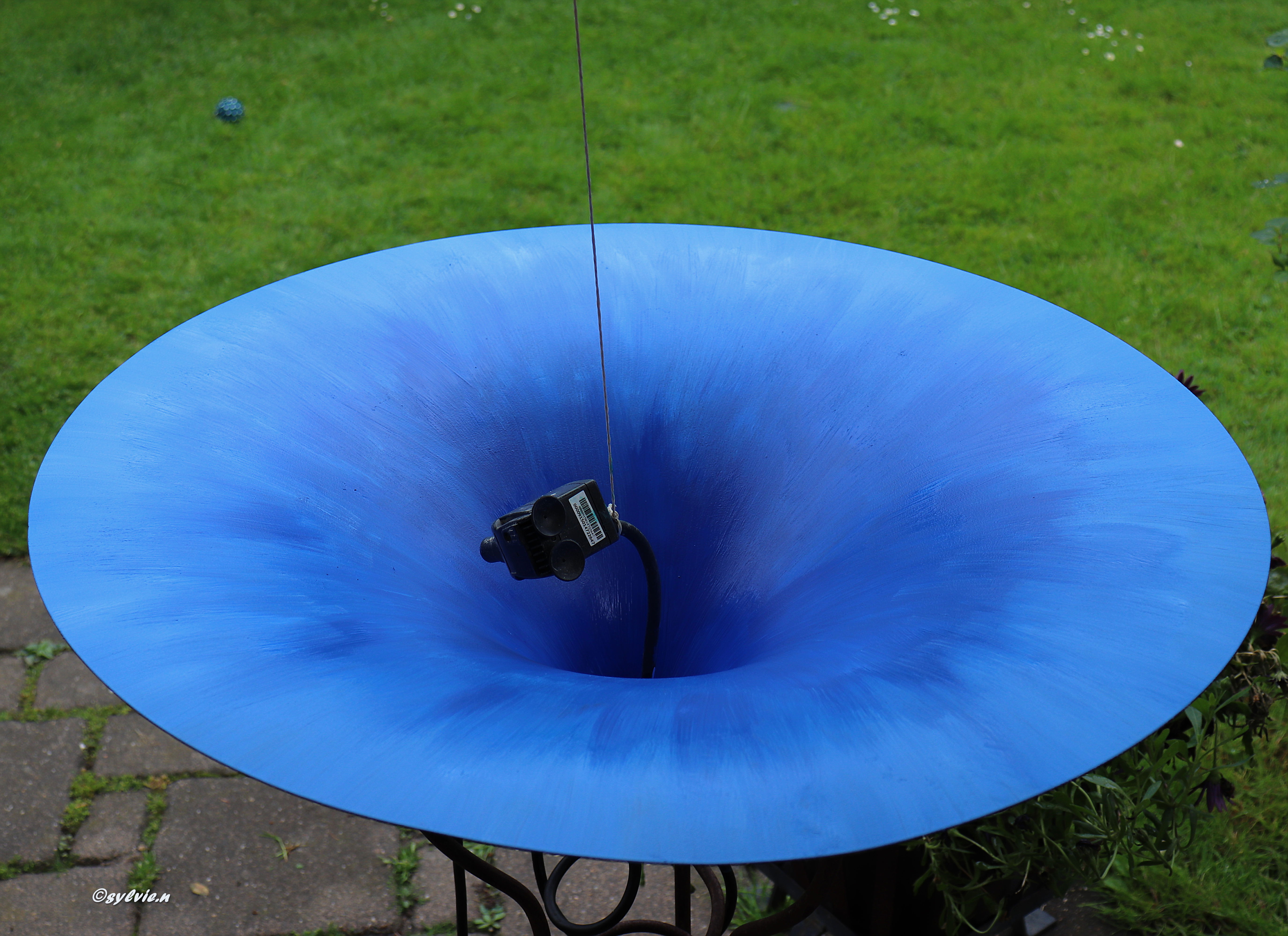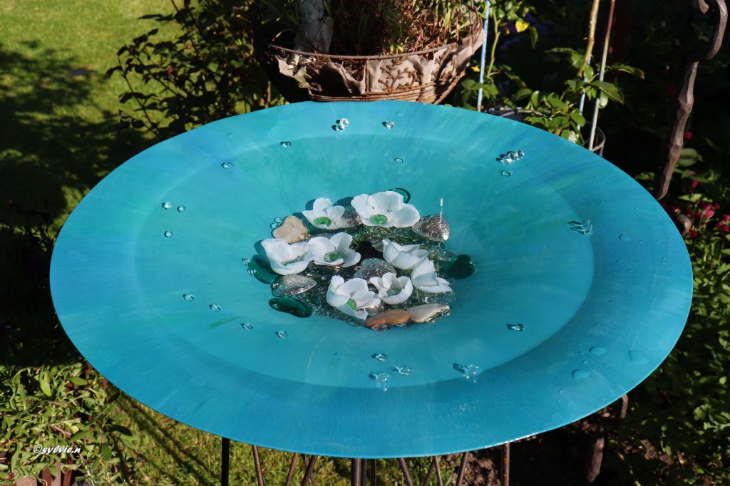 Ich mache Springbrunnen aus den Lampen. Und dann ging es los. Ich habe überlegt, was brauche ich dazu. Einen kleine Pumpe, Silikon, fertig. Ging ganz einfach und nach ein paar Tagen waren meine zwei Springbrunnen fertig. Noch etwas dekoriert. Sie sahen wirklich schön aus.