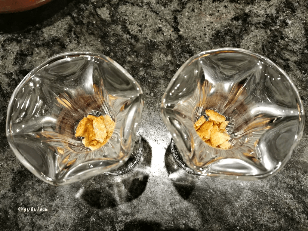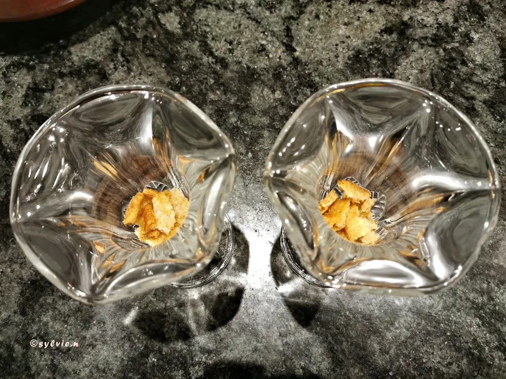 Jetzt die Gläser bereitstellen, die Haferkekse leicht zerbrechen und in die Gläser füllen. Den Orangenlikör über die Kekse geben. Die Menge nach eigenem Wunsch hinzufügen.
