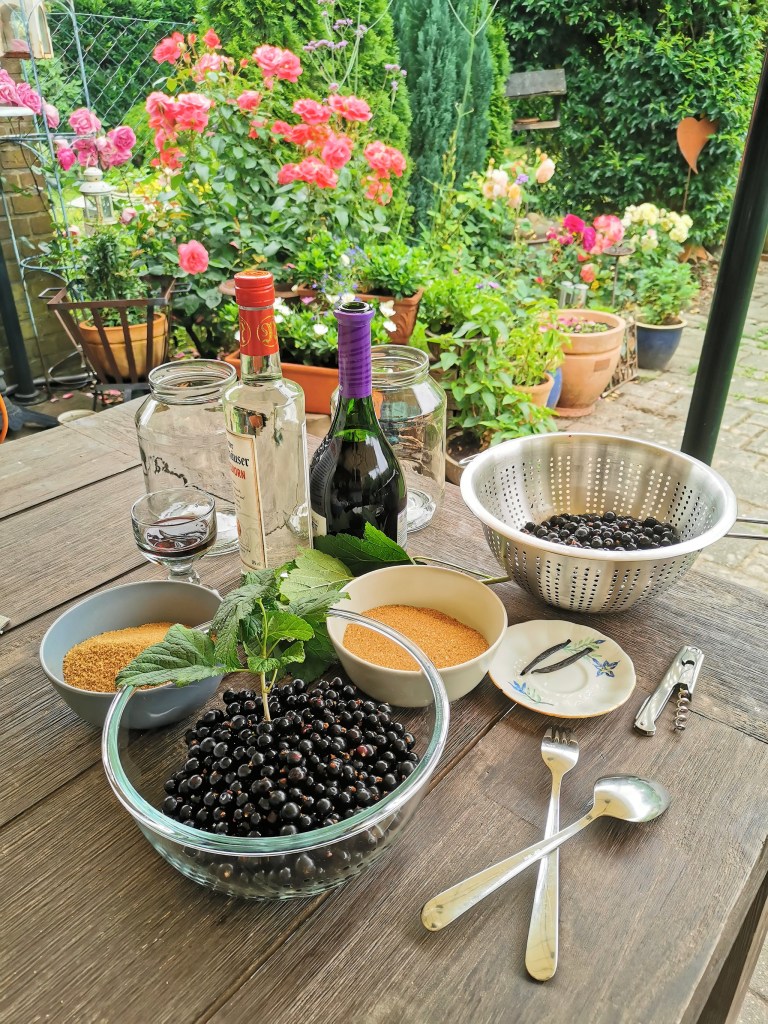 Deckel drauf und gut verschließen. Das Glas an einen hellen Ort stellen. Ich stelle sie auf meine Terrasse. Sie können ruhig Sonne abbekommen. Ich lasse sie dann zwei Monate draussen stehen und danach kommen sie in den Keller und stehen noch weitere zwei Monate im dunkeln. Wichtig ist, das Glas regelmäßig umzudrehen. Nach der Wartezeit schütte ich die Früchte durch ein Sieb und fülle dann den Likör in Flaschen ab. Ich kann es kaum erwarten, bis der Cassis fertig ist. Aber ich habe ja noch einen kleinen Rest vom letzten Jahr. Zu besonderen Anlässen rücke ich dann meinen Cassis heraus. Gerne als Kir Royal , aber auch pur oder auf Eis schmeckt der schwarze Likör sehr gut.