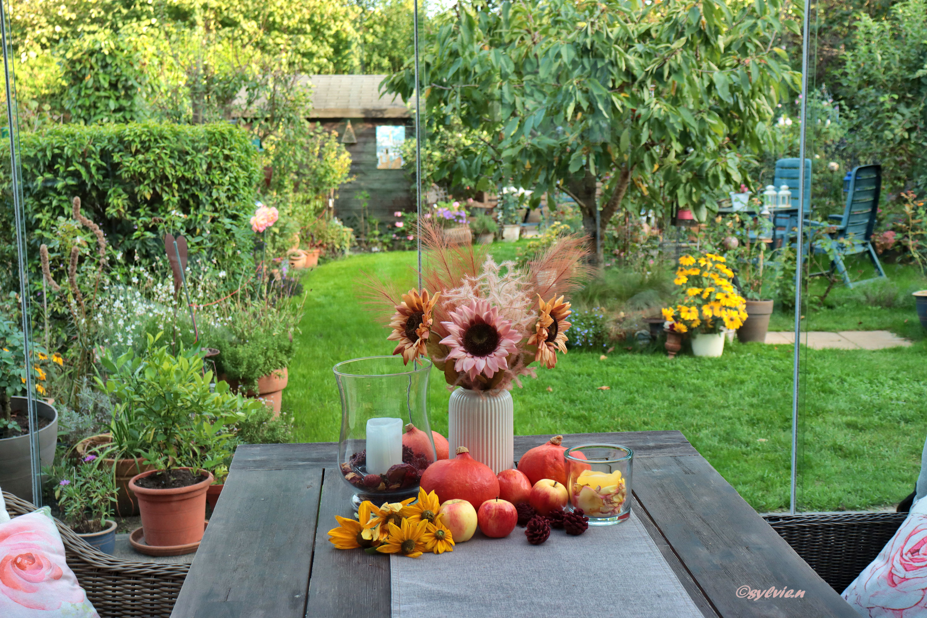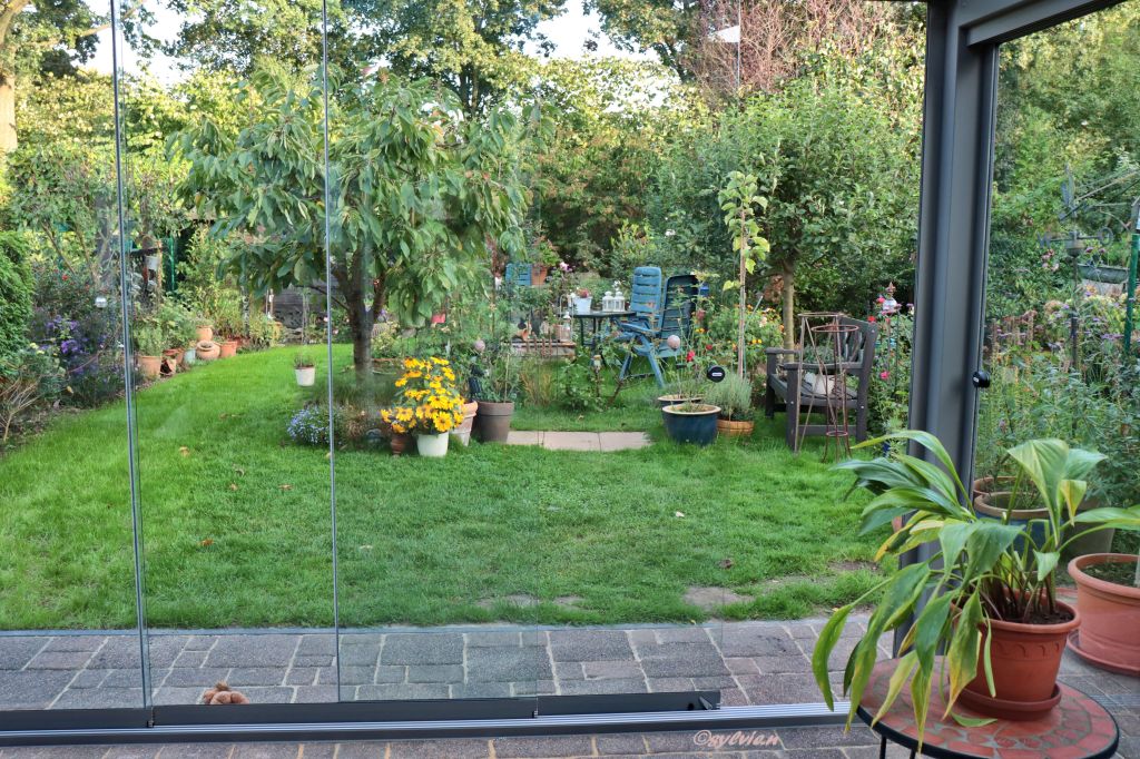Gestern hat es den ganzen Tag geregnet. Unser Garten ist noch so unheimlich grün. Aber ich denke, es wird jetzt ganz schnell gehen und der Garten wird sich in den schönsten Herbstfarben zeigen.