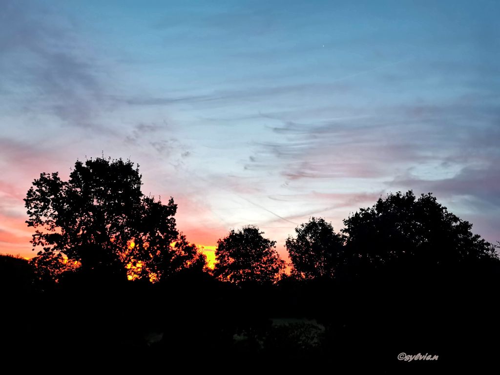 Diesen Sonnenaufgang habe ich vor ein paar Tagen von unserem Dachfenster aufgenommen. Weil ich nur mein Smartphone oben hatte, habe ich damit alle paar Minuten ein Foto gemacht.