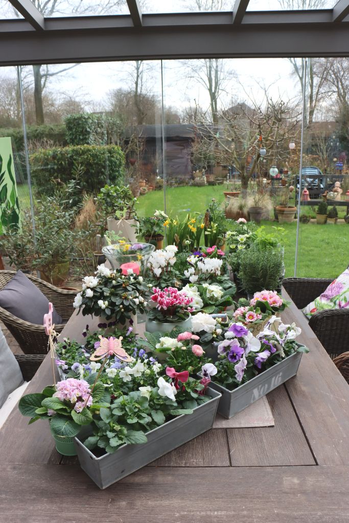 Aber ich wäre nicht ich, wenn ich nicht etwas gegen diese Stimmung tun würde. Also hole ich mir den Frühling in unser Gartenzimmer. Da war die Fahrt in die Gärtnerei fällig. Wir fahren öfters nach Venlo in die Gärtnerei Leurs. Da gibt es alles was das Herz begehrt. Von Pflanzen, Blumen, jede Menge Dekorationsbedarf.