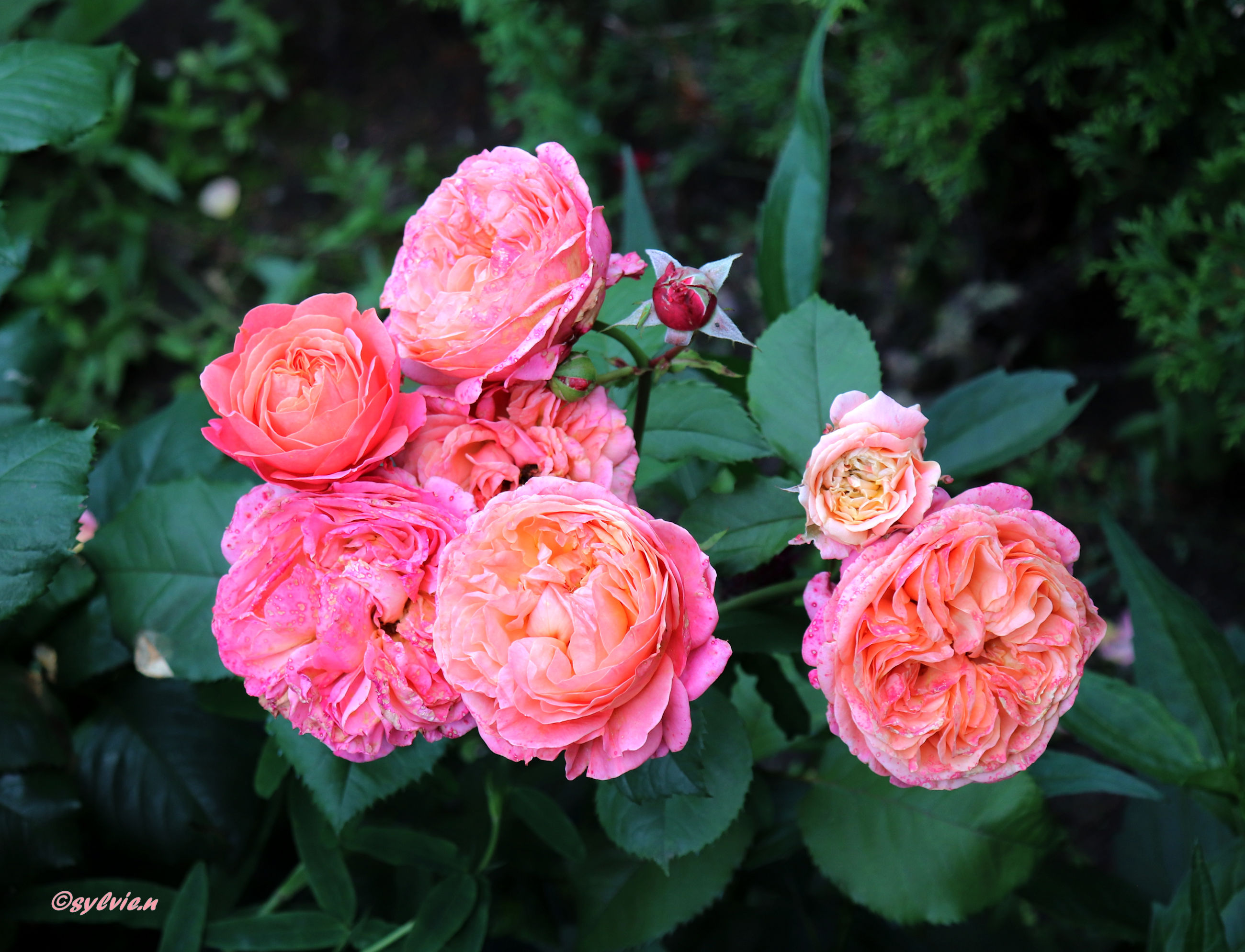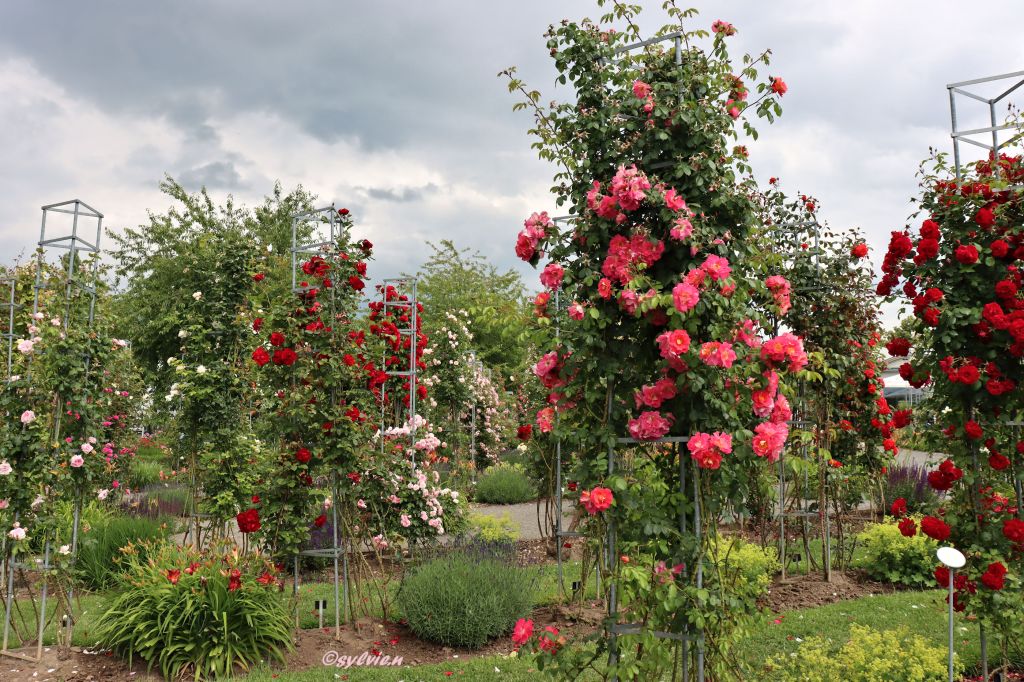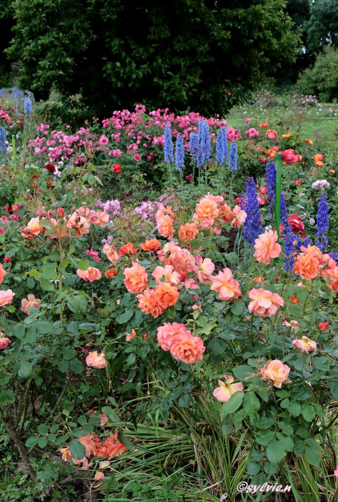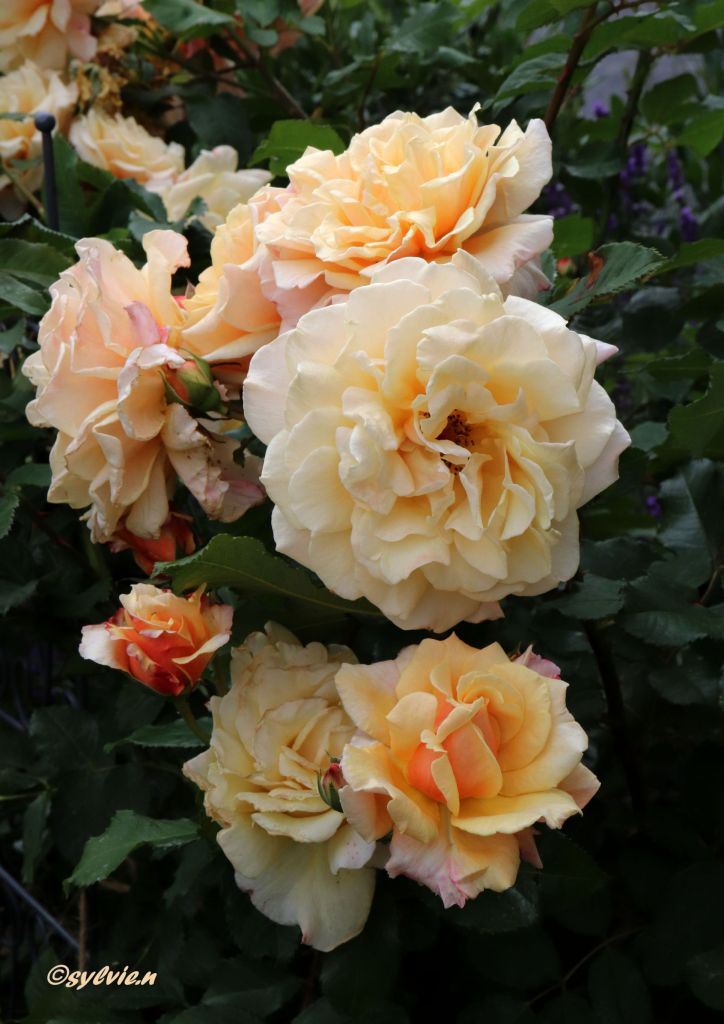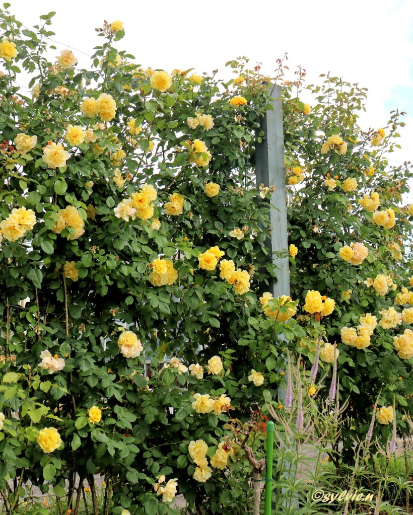 So eine Rosenpracht ist schon überwältigend. Wo schaut man hin. Es ist eine wahre Reizüberflutung, im positiven Sinne natürlich. Diese Farben und wie es duftet, unglaublich. Und zu unserer Freude, hörte der Regen auf. Aber diese drei Rosen schmücken sich mit kleinen Regentropfen.