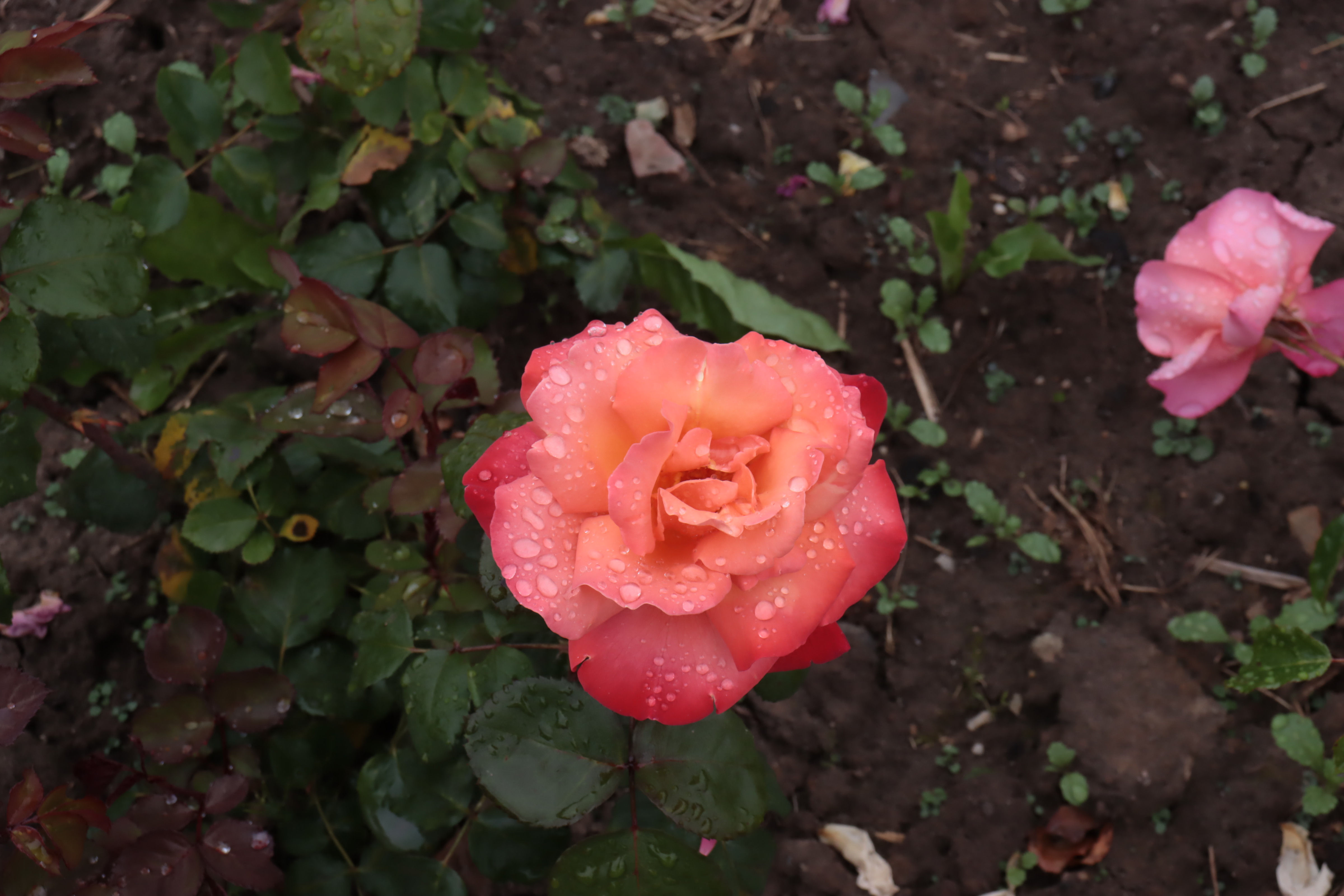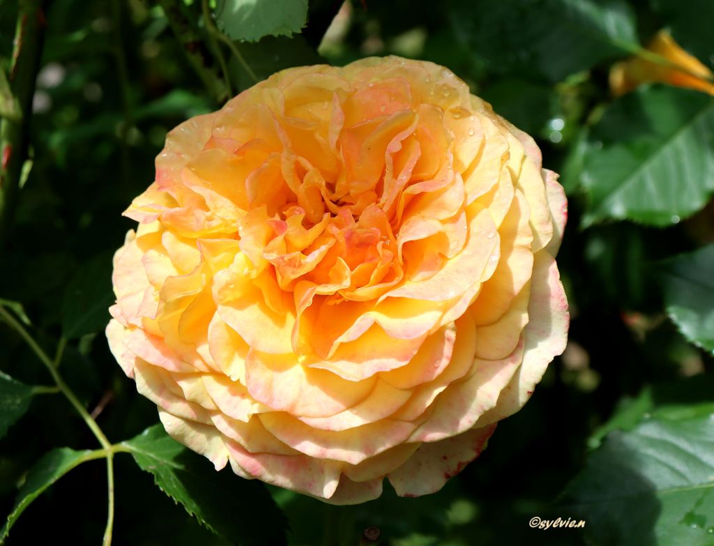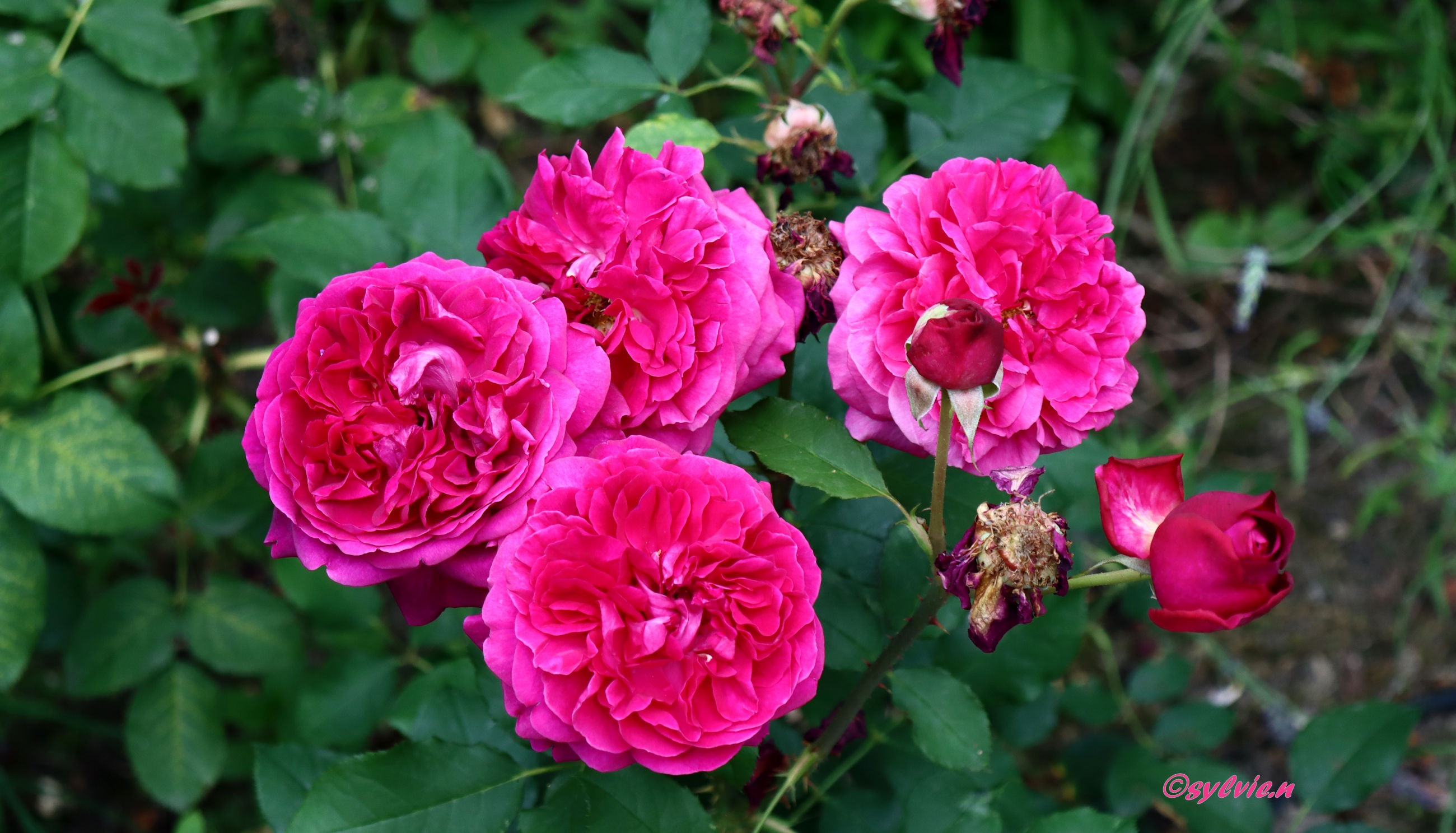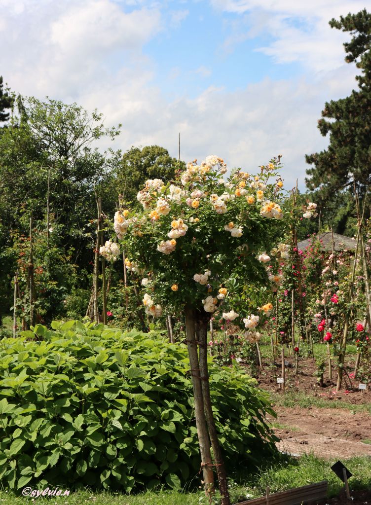 So eine Rosenpracht ist schon überwältigend. Wo schaut man hin. Es ist eine wahre Reizüberflutung, im positiven Sinne natürlich. Diese Farben und wie es duftet, unglaublich. Und zu unserer Freude, hörte der Regen auf. Aber diese drei Rosen schmücken sich mit kleinen Regentropfen.