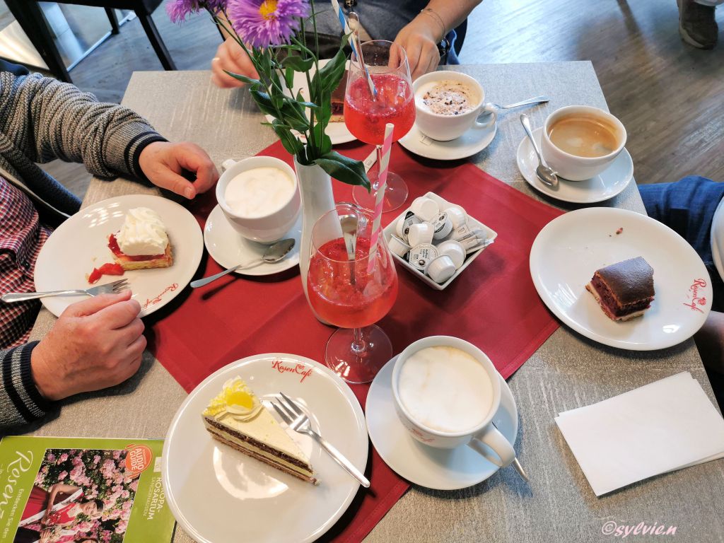 Das Rosarium vermittelt nicht nur viel Wissenswertes über die Rose, es ist auch ein Ort der Entspannung. Um kurz zur Ruhe zu kommen, gibt es viele Sitzmöglichkeiten. Und zur kleinen Entschleunigung geht man ins RosenCafe und genießt dort den leckeren Kaffee und Kuchen und etwas Spritziges.