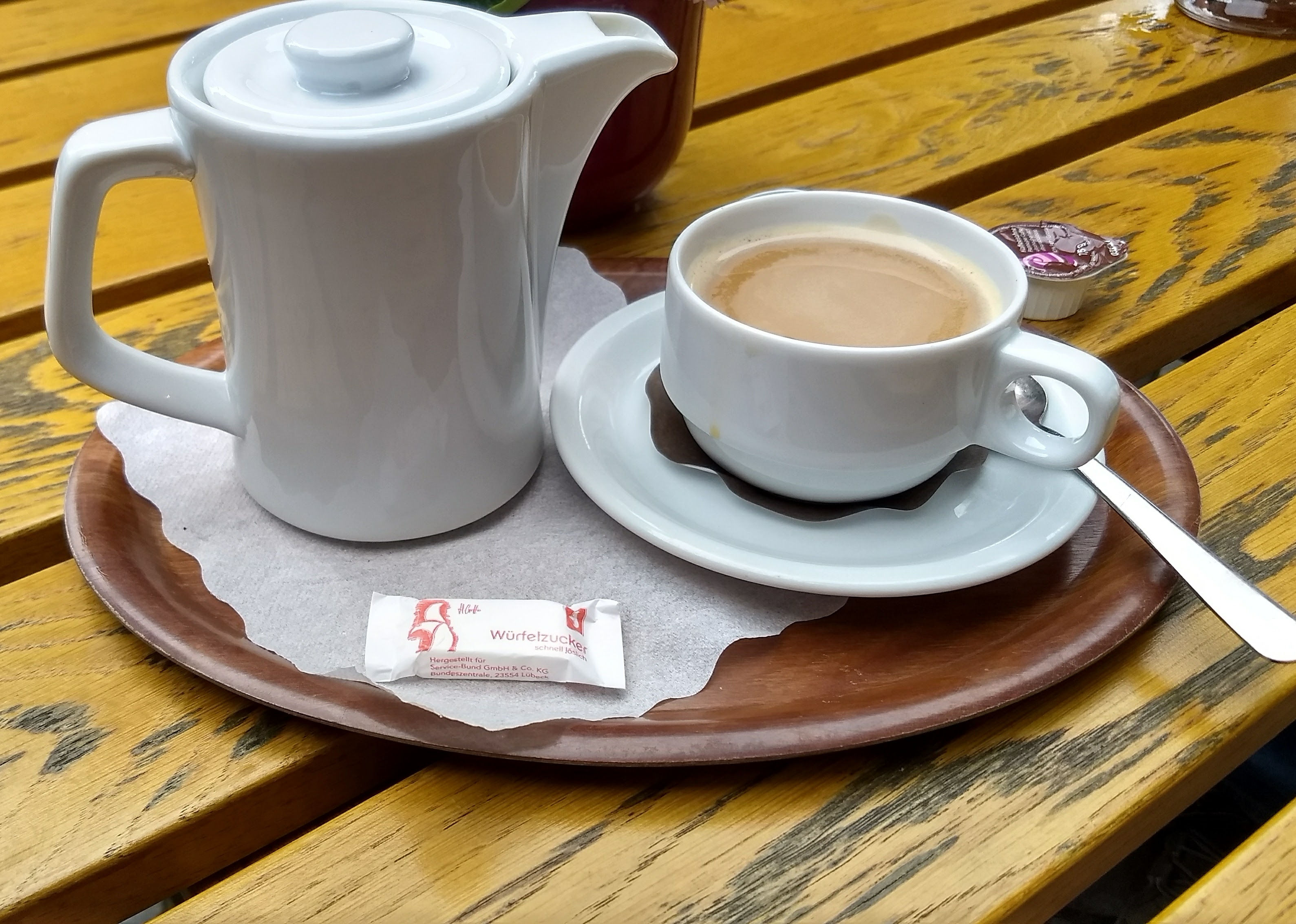 In Rüdesheim war es total retro. Hier gab es draußen nur Kännchen.